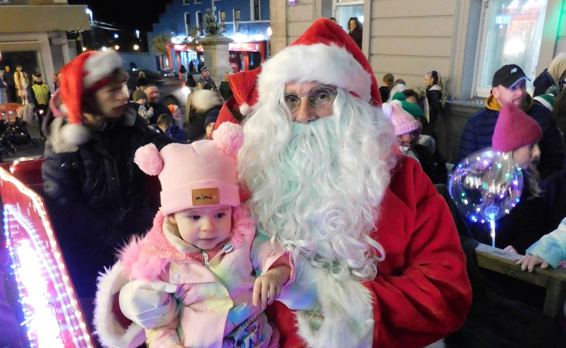 Kaelie Quinn meets Santa Claus at the switching on of the Christmas Lights in Tipperary Town.
