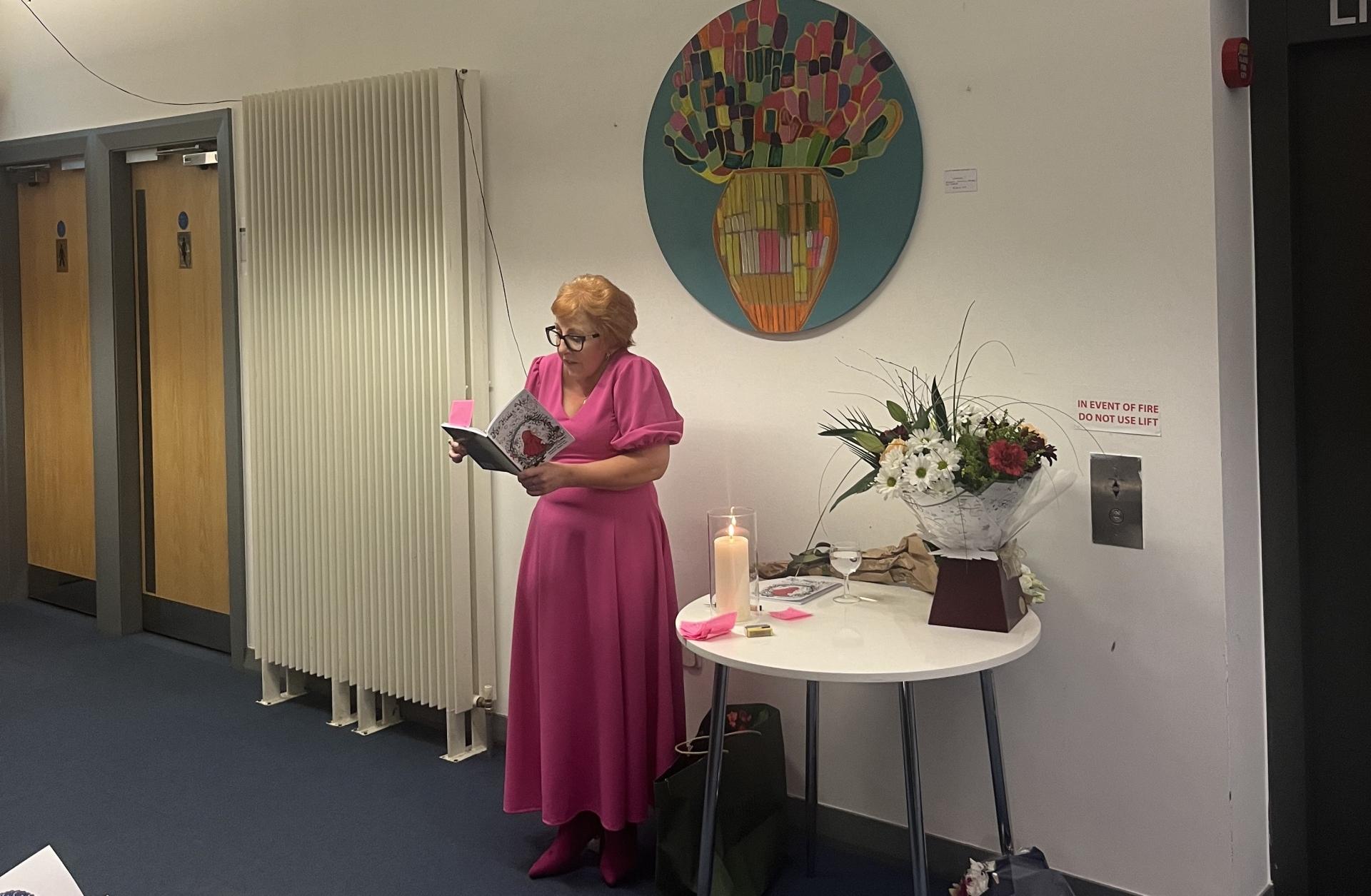 Margaret reading a poem from her book at the launch.