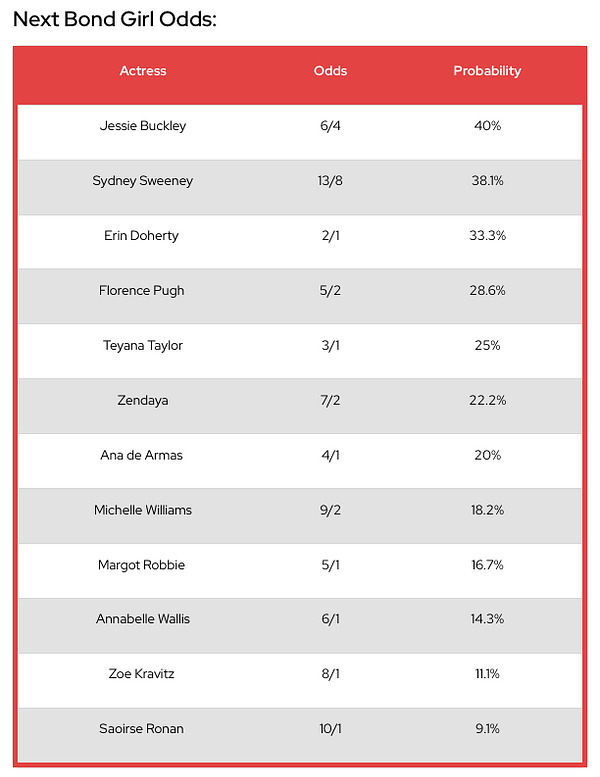 According to Gambling.com, who specialise in comparing and ranking online gambling sites, Buckley now leads the Next Bond Girl market. Their detailed analysis of odds and predictions can be seen down below.