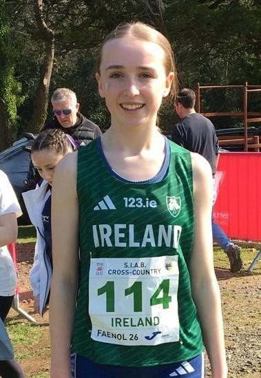 Pictured above is Neasa Moloney making her international debut for the Irish Schools’ Athletics Team.