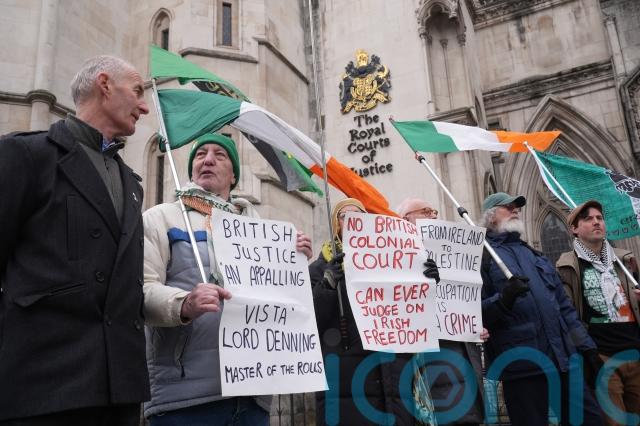 A handful of protesters surrounded Mr Adams’ car as he arrived at the High Court on Thursday, shouting and holding placards.