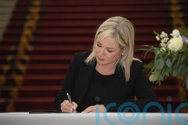 The party’s vice president also signed a book of condolences for the Queen at Belfast City Hall on Friday.